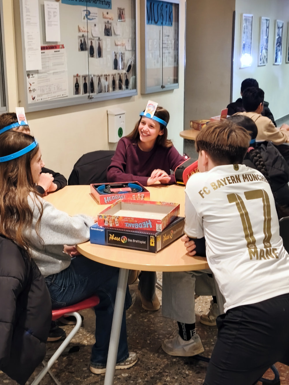 Für das leibliche Wohl war rundum gesorgt. Die Q3 verkaufte Brezeln und Würstchen, und der Andrang war so groß, dass die Brezeln nachbestellt werden mussten. Das spricht für die gute Stimmung, die herzliche Bewirtung und den gelungenen Mix aus Spiel, Austausch und Schulgemeinschaft. Zwischen einer schnellen Spielrunde und einem herzhaften Snack fand sich überall Raum für Gespräche, neue Teams und spontane Begegnungen.