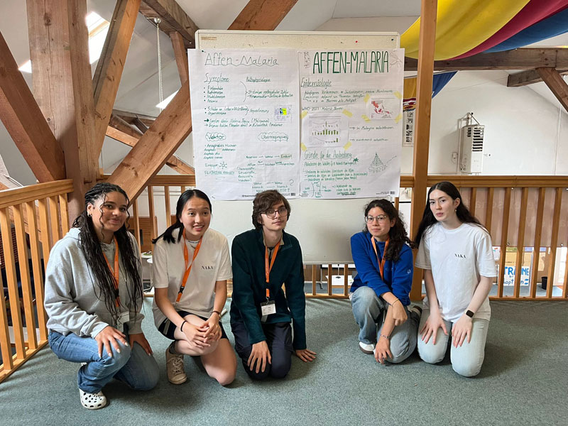 Biologisch-medizinisch: Dieses Gebiet war nämlich der Schwerpunkt. Die Leiterinnen haben immer einen allgemeinen Überblick geschaffen, z.B. Fachvokabular, die Erreger der Infektionskrankheiten, Modell der Infektionswege, verschiedene Nachweise des Erregers (Polymerase Kettenreaktion, Antigennachweis, usw.), Dengue Fieber und sein Verlauf, Malaria-Lebenszyklus, usw., damit wir solche Themen auch vertiefen konnten. Beispielsweise hatte Freia mit der neuen Information zum Lebenszyklus der Malaria das Thema der Impfstoffentwicklung eingeleitet. Ab welchem Stadium sollte man den Impfstoff einsetzen? Sollte ich ihn kurz vor der Übertragung der geschlechtlichen Zellen vom Mensch auf die Mücke einsetzen, obwohl der Patient nicht symptomfrei ist? Es war ein Thema, was mich auf jeden Fall schnell fasziniert hat.