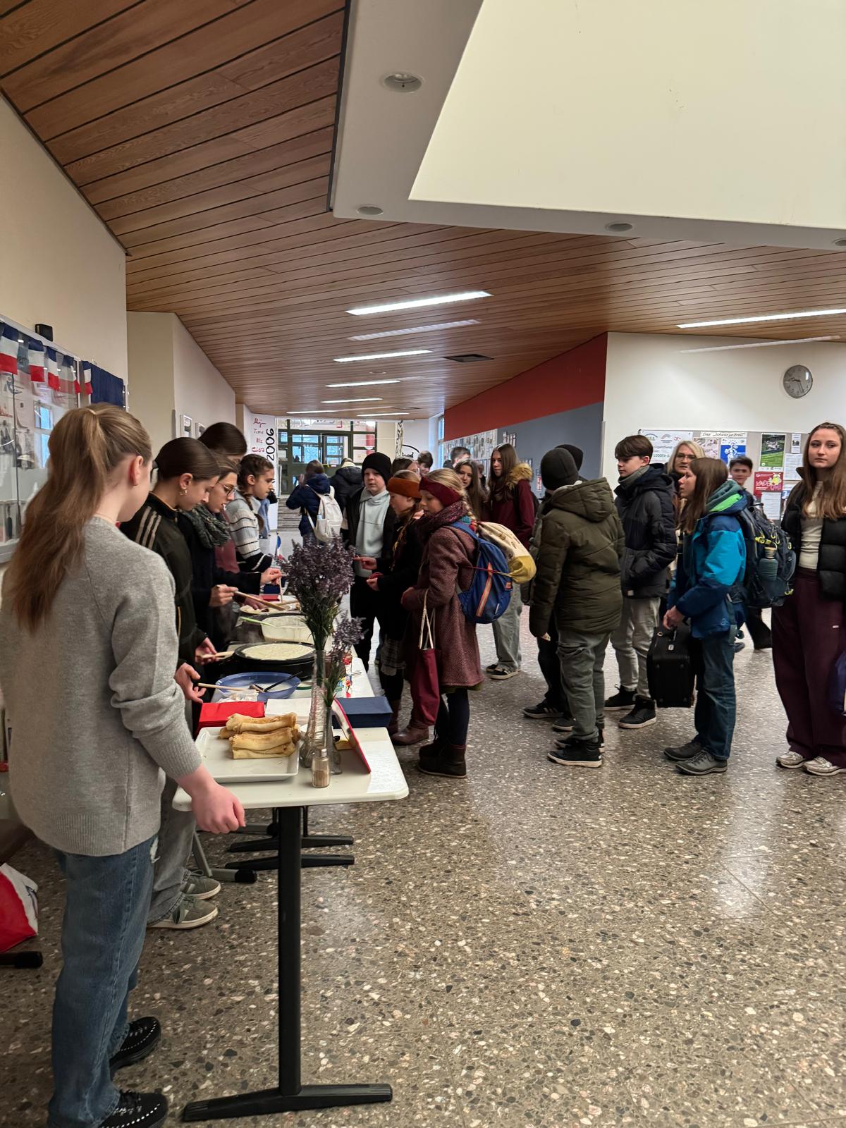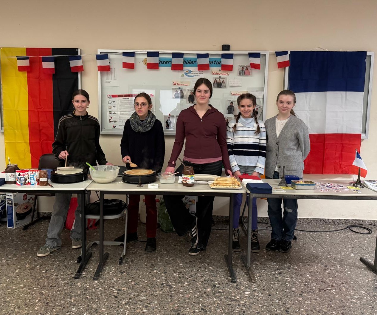Die Französischschülerinnen und Französischschüler des 7. Jahrgangs organisierten gemeinsam mit Frau Tekin, unserer neuen LiV für Französisch, einen Verkauf selbstgemachter Crêpes. Dank ihres großen Engagements und ihrer hohen Motivation konnten 181,50 Euro eingenommen werden. Der gesamte Betrag wird dem Förderverein unserer Schule gespendet, wofür wir allen Beteiligten herzlich danken.