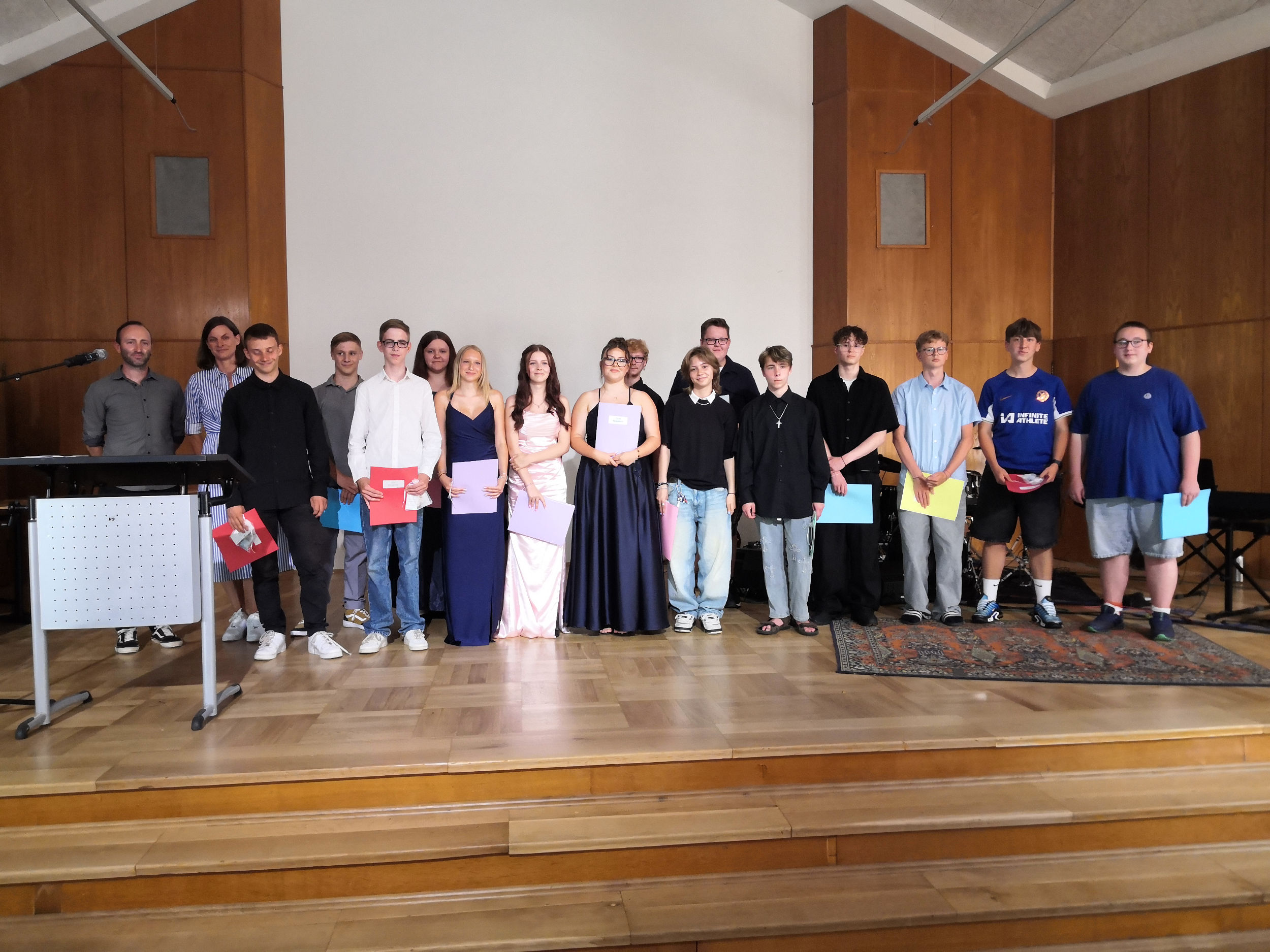 Für den stimmungsvollen Rahmen sorgten der Schulchor Clefs unter Leitung von Herrn Wiechert sowie Solistinnen Hannah Marchweka und Emily Neumann. Mit gefühlvollen Liedbeiträgen schufen sie eine feierliche Atmosphäre, die das Programm perfekt abrundete.