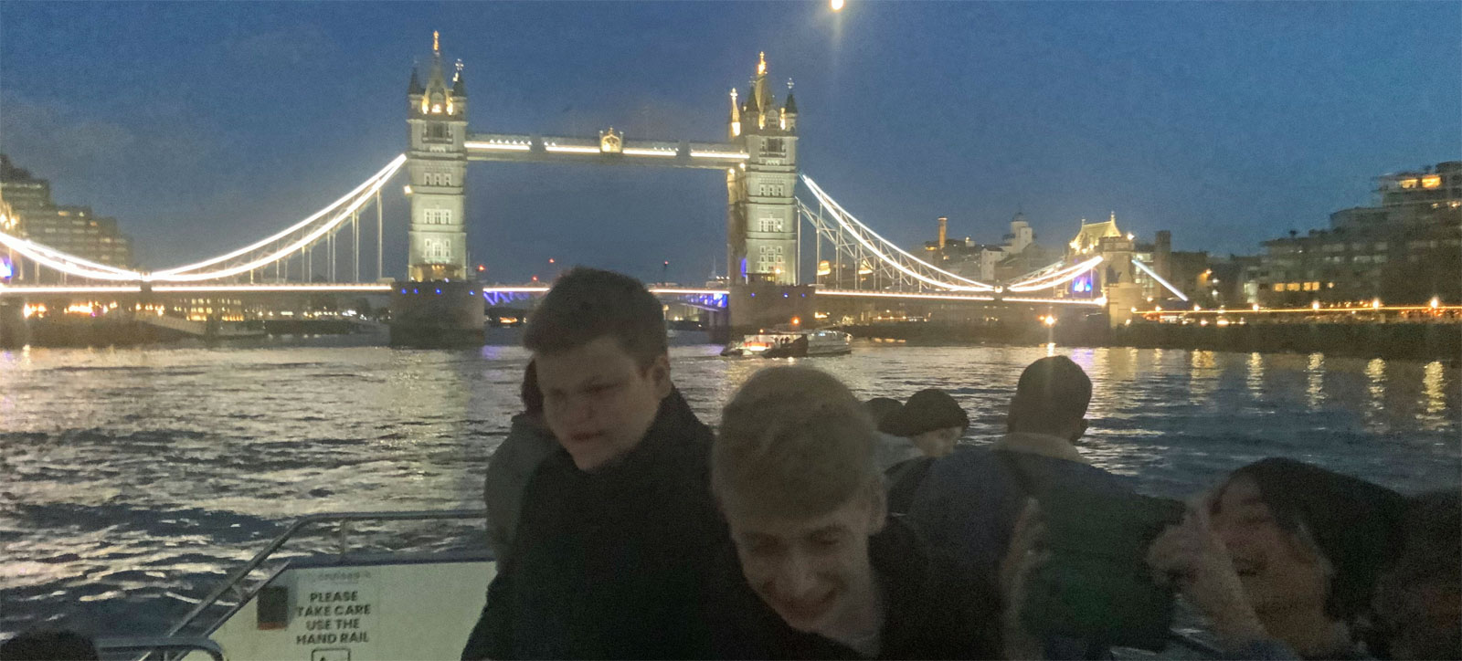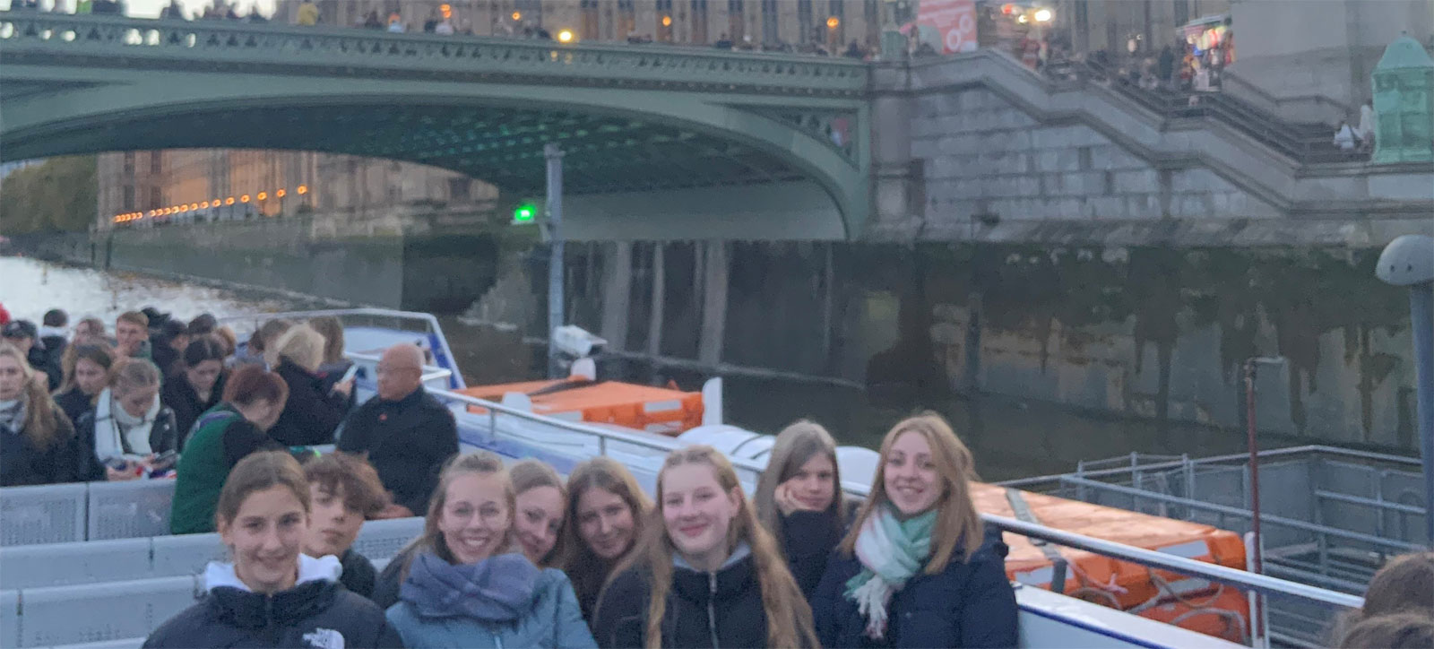 Den krönenden Abschluss des Tages bildet die Schiffsfahrt im Abendlicht, vom Westminster Pier in Richtung Tower. So erhebend, wie der Besuch begann, so endet er für Schüler/innen und Betreuer auf dem offenen Deck des Themse-Kreuzers, der zahllose Zeugnisse britischer Kultur und Geschichte passiert: Shakespeares Globe Theatre, die Tate Modern, einen Nachbau von Sir Francis Drakes „Golden Hinde“, die aus der Pharaonenzeit stammende Säule Cleopatra’s Needle, das Kriegsschiff HMS Belfast, das schon bei der Landung in der Normandie dabei war… Ein Land zelebriert sich selbst und seine Geschichte. „Crisis - what crisis?“